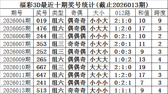 开奖回顾:福彩3D第2026013期奖号为513,奖号形态为:组六、大小小、1:1:1、奇奇奇。