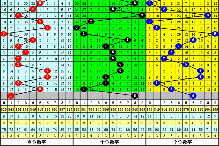 第三位上期开出奖号3,走大2点,本期该位继续走大,参考号码6。