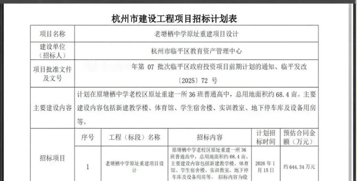 有些事,你不得不服杭州的行动力。尤其是教育。别的城市还在讨论“要不要多建几所学校”,杭州这边已经一批批新校区开工,一个个地块推上招标台。最近,临平区又一次放出大招——16亿,直接砸下去,两所高规格公办高中走起。听起来像是“正常操作”?不,你得看看细节。